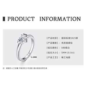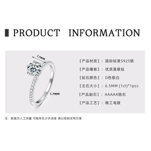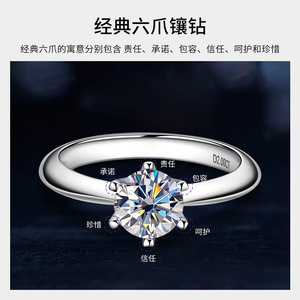【1688厳選】女性用クラシック6本爪Dカラーモアッサナイトリング シルバー925メッキ 18Kゴールド 人気Tファミリーリング 女性用