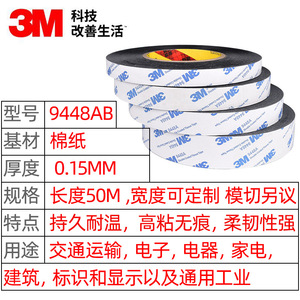 3m 9448ab両面テープダイカットタイプ耐高温強力超薄不織布両面テープ黒色遮光電子