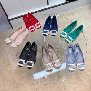 工場直販 rv ドリルバックルフラットシューズ女性用サテンウェディングシューズ快適で多用途の浅い口ラウンドトゥ通勤女性