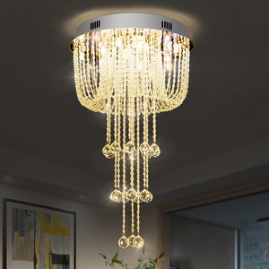 クロスボーダーシンプル水晶シャンデリア現代創意複式階段小シャンデリア円形個性ledリビングシャンデリア