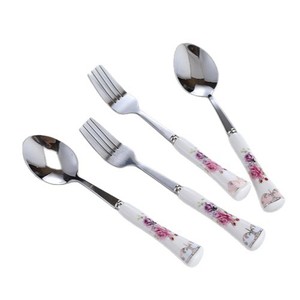 中六角陶磁器の柄はステンレスのスプーンを厚くします。
