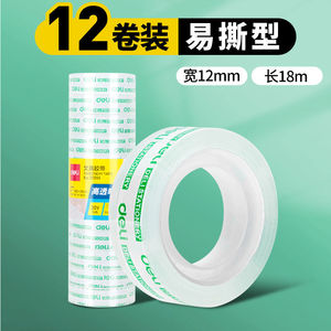 有能な透明な細いテープの小学生は小さいサイズのテープの1.2cmの手でテープの文房具の小さい巻きのテープを引き裂きます。