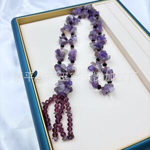 紫水晶の砂利のセーターのチェーンのブドウの石のガーネットの女性のファッションの長いタイプの玉のネックレスの生放送の商品の供給源