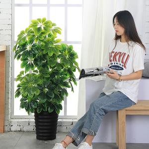 金の木の装飾の植物の室内の偽の鉢植えの客間の花の大型の着地する緑の植栽のプラスチックの偽の花の盆栽をシミュレーションします。