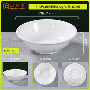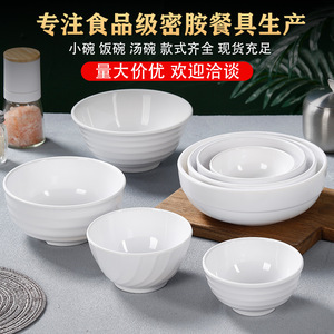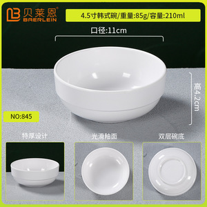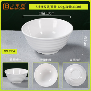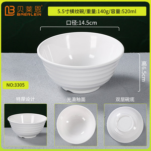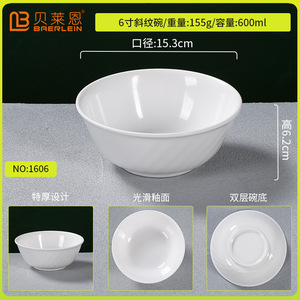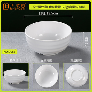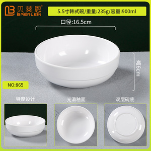 A5メラミン白いスープ碗のお粥碗レストランの朝食店の業務は磁器の斜紋の反口の砂糖碗の韓国式の碗の卸売りに似せます。