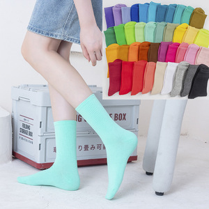 靴下の女性の春と秋の流行に合わせて、純色の綿の靴下を積んで靴下の中のストッキングの吸汗運動のファッションの靴下の卸売りをします。