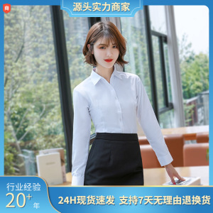 【工場商品通】白いシャツ女性長袖2021秋装新職業装vネック修身正装綿シャツ