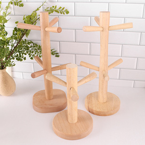 創意的な木製の杯の棚のゴムの木の杯の棚のアクセサリーの棚の水の杯の棚の6爪の収納棚のお茶の杯は水の杯の棚を逆さまに掛けます。