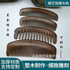 ブラックゴールドシルクサンダルウッドコームサンダルウッドムーンコームブラックゴールドシルクサンダルウッドコーム刻印ロゴ理髪マッサージコーム卸売