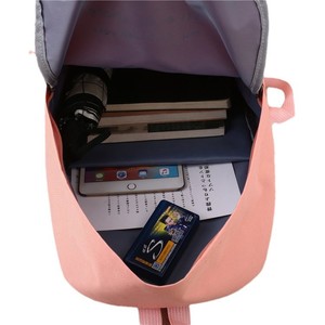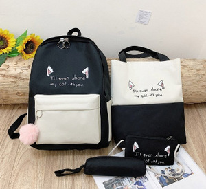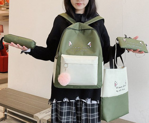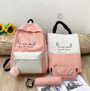 キャンバスの学生のカバンの外国貿易の新型の4つのセットのダブルバックの韓国版のアルファベットは毛玉のカバンのリュックサックの女性を持ちます。