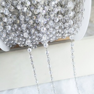 透明な白いビーズの銀色のチェーン