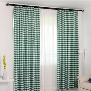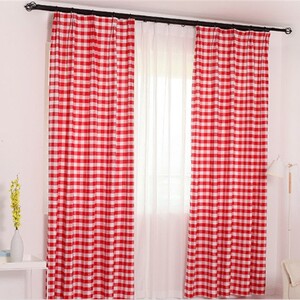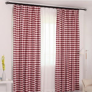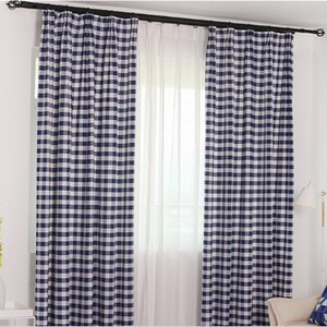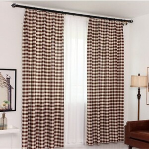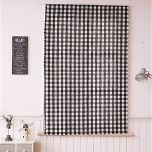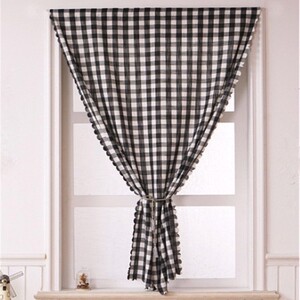 格子カーテン生地オフィスリビングルーム寝室仕切り书斎フローティング窓バルコニーフック贴り付けカーテンマジックテープ
