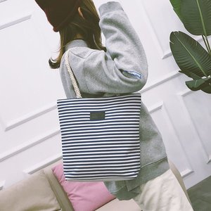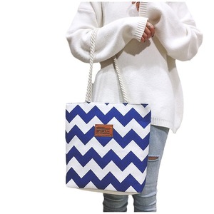 曼文メーカー文芸キャンバス女性ショルダーバッグクロスボーダー新型女性カバン波ストライプ麻縄手提げキャンバスバッグ