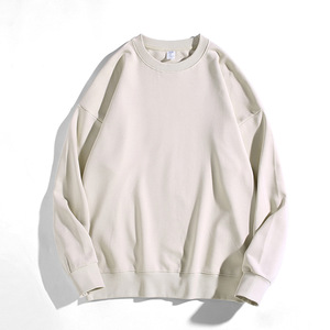 380g厚手の毛圈純綿スウェットシャツ、男女兼用、無地、日本風、ドロップショルダー、ゆったり、カスタムメイド、ラウンドネック、厚手の純綿