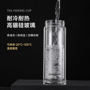 明霞二重グラスフィルタシンプルな男性ビジネス携帯透明カップ家庭用オフィスカップロゴ印字