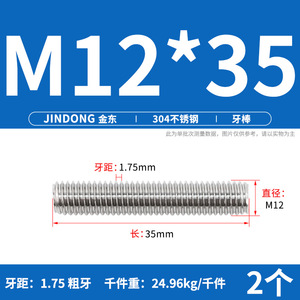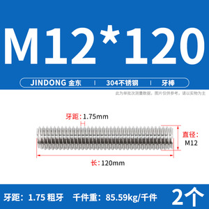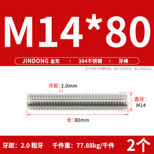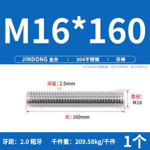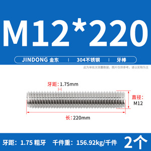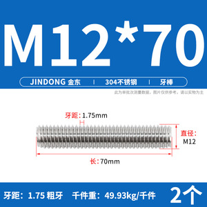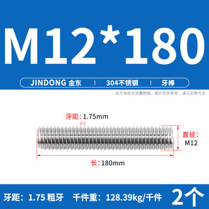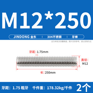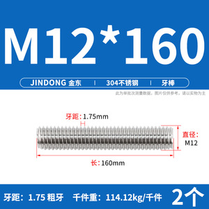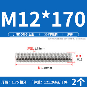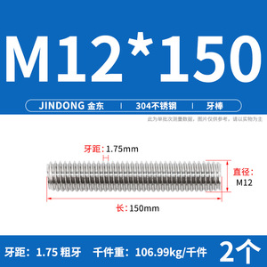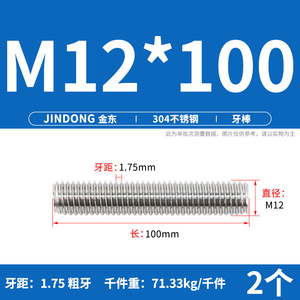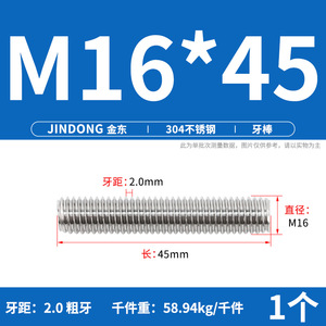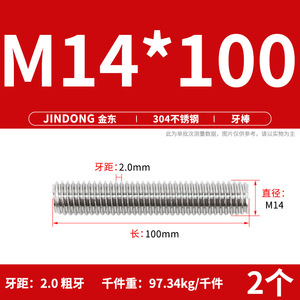 304 ステンレス鋼ショート歯全ねじスタッドねじねじ M12M14M16M18M20 マルチ仕様