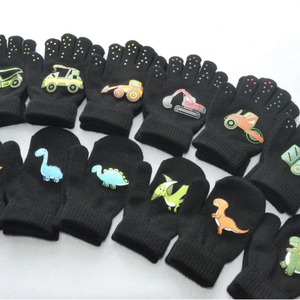 5-11歳の子供の冬の保温アウトドアスポーツのベルベットの厚い手袋漫画の工事車の模様のニット手袋