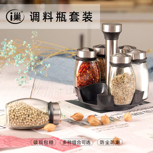 代理調味料瓶セット回転調味料ラック日本式調味料瓶ガラス密封調味料瓶メーカー直供