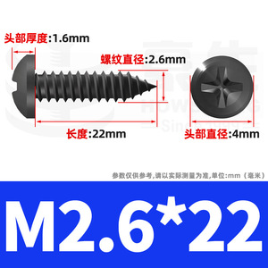 焼き入れPA十字溝丸頭加硬タッピングねじ黒盤頭自功ねじm 1.8/M2/M3/M4/m 5