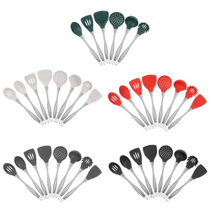 304鋼柄シリカゲル調理器具非粘着鍋専用シリカゲルシャベルスプーンセット耐高温シリカゲル食器8点セット