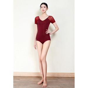 形の服の女性のスーツの成人のダンスの連段の練習の功服はネットの紗の修身の礼儀をつなぎ合わせてモデルのショーの服を育成訓練します。