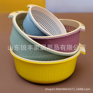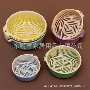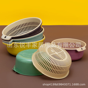 家庭用二層円形水たまりバスケットのプラスチック収納バスケットの大きいサイズの台所の野菜を洗う盆のセットのかごには穴があります。