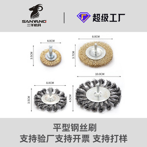 ワイヤーブラシ柄付きワイヤーブラシ鋼線研削ヘッドt型銅線ブラシねじり棒ボウルスチールホイール平6mm柄