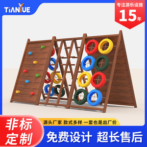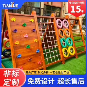 幼稚園の登山棚の室内の感覚はネットに登る子供のロッククライミング壁の木製の屋外の滑り台のブランコの組み合わせを訓練します。