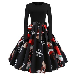 欧米のクリスマスの雪だるまの花のプリントの服装のワンピースの大量の現物は一つずつ売って新しい花を増加します。