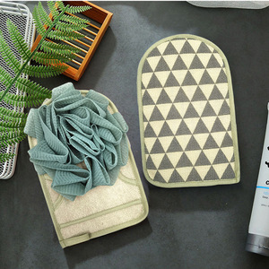 バスタオルの入浴手袋の5本の指の風呂タオルの泥をこすります。