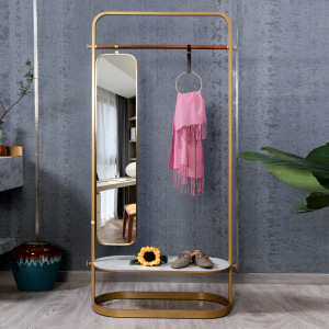意式の軽い豪華な服の帽子の棚の寝室は床に着いて服の竿の真鍮の金色のステンレスの服装を掛けて簡単にハンガーを掛けて供給します。