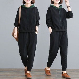 大きいサイズの女装の洋気は年齢を減らして腹を覆います帽子の長袖のスーツの春秋の新型の太ったmm200斤はやせている2つのセットを現します。