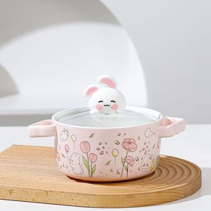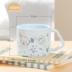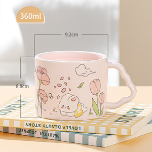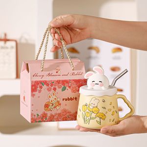 漫画かわいいウサギストローカップ蓋付きクリエイティブカップセラミックマグカップ女の子の親友家庭用プレゼントカップ