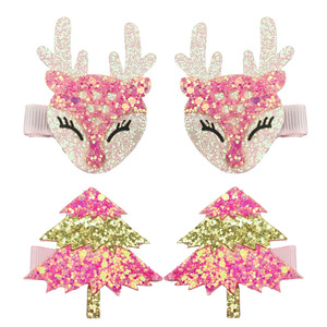 20817新しいクリスマスちょう結びヘアクリップ立体鹿角bbクリップスパンコールクリスマスツリー子供ペアクリップ頭飾り