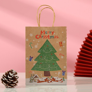 国境を越えたクラフト紙袋クリスマス祭りプレゼント包装袋卸売りはロゴスポットを印刷してクリスマスを印刷することができる