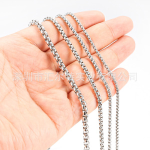 ステンレス角真珠箱チェーン保色真空金男女ネックレスチェーンアクセサリーチェーンdiy大量スポット