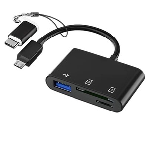 三合一カードリーダー-アンドロイド黒 + type-cアダプタ + ストラップ