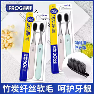 カエル歯ブラシ 家庭用セット 細い毛先の柔らかい毛 竹炭繊維 高密度毛 大人男女用 長いブラシヘッド 正規品