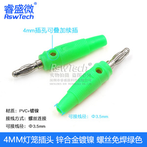 4mmランタンプラグ亜鉛合金ニッケルメッキねじ溶接フリーグリーン