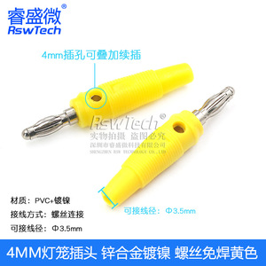 4mmランタンプラグ亜鉛合金ニッケルメッキネジ溶接フリー黄色