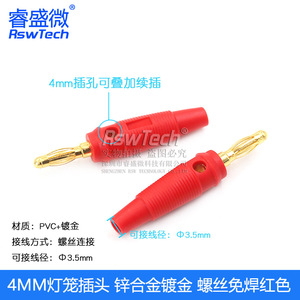 4mmランタンプラグ亜鉛合金金メッキネジ溶接フリー赤