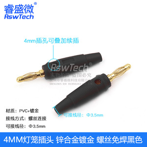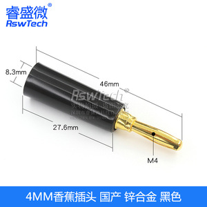 4mmランタンプラグ亜鉛合金金メッキネジ溶接フリーブラック
