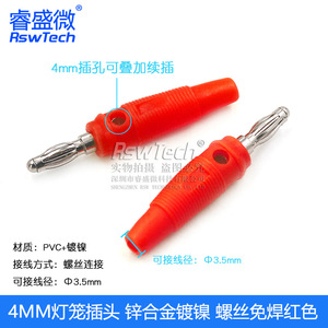 4mmランタンプラグ亜鉛合金ニッケルメッキネジ溶接フリー赤
