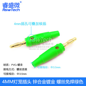 4mmランタンプラグ亜鉛合金金メッキネジ溶接フリーグリーン