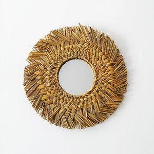 ボヘミアンストローミラーエスニックスタイル装飾吊りミラー手作りタッセル織壁掛けベッドと朝食のベッドサイドの壁の装飾