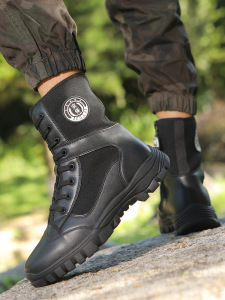 夏の安全保障の靴の男の高さはネットの目の作戦の靴の黒色の労働保護の訓練をして靴の安全保障の靴の工装のマーティンの靴を執っています。