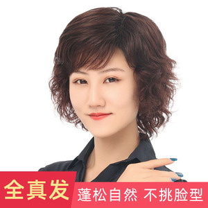 かつらの女性のショートヘアの短い巻き髪は、中高年の全頭カバーがふわふわしています。
