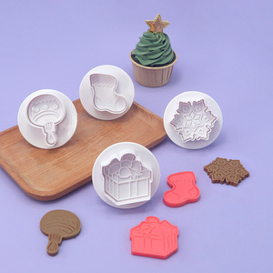 Kulai 装飾白いプラスチック成形 opp クリスマス模擬ビスケット型ベーキング 4 ピースクリスマススプリング型