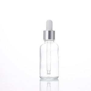 30ml; シルバーリング + 白いプラスチックチップドロッパー + 透明ボトル; ガラス