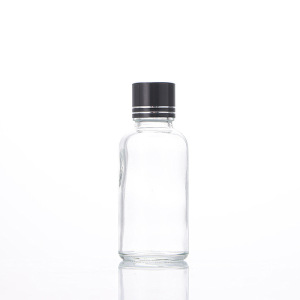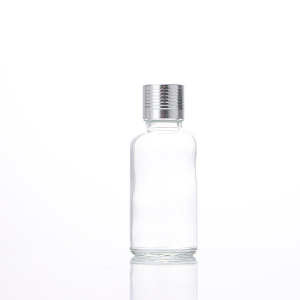 30ml; ブライトシルバーキャップ + 中栓 + 透明ボトル; ガラス